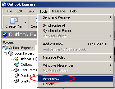 Outlook Express - SMTP Authentication Configuration for Mail Relay Outbound Service To assist our users in using our Mail Relay Outbound service, this document describe the procedures on how to configure Outlook Express - SMTP Authentication Configuration to work with the service at DnsExit.com. 1. Open Outlook Express 2. From the Tools menu select Accounts...